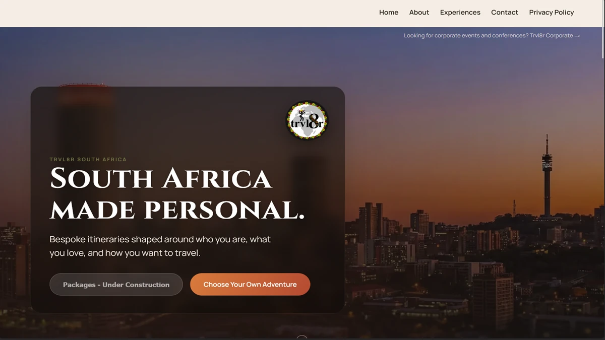 Bespoke South Africa travel planning site.